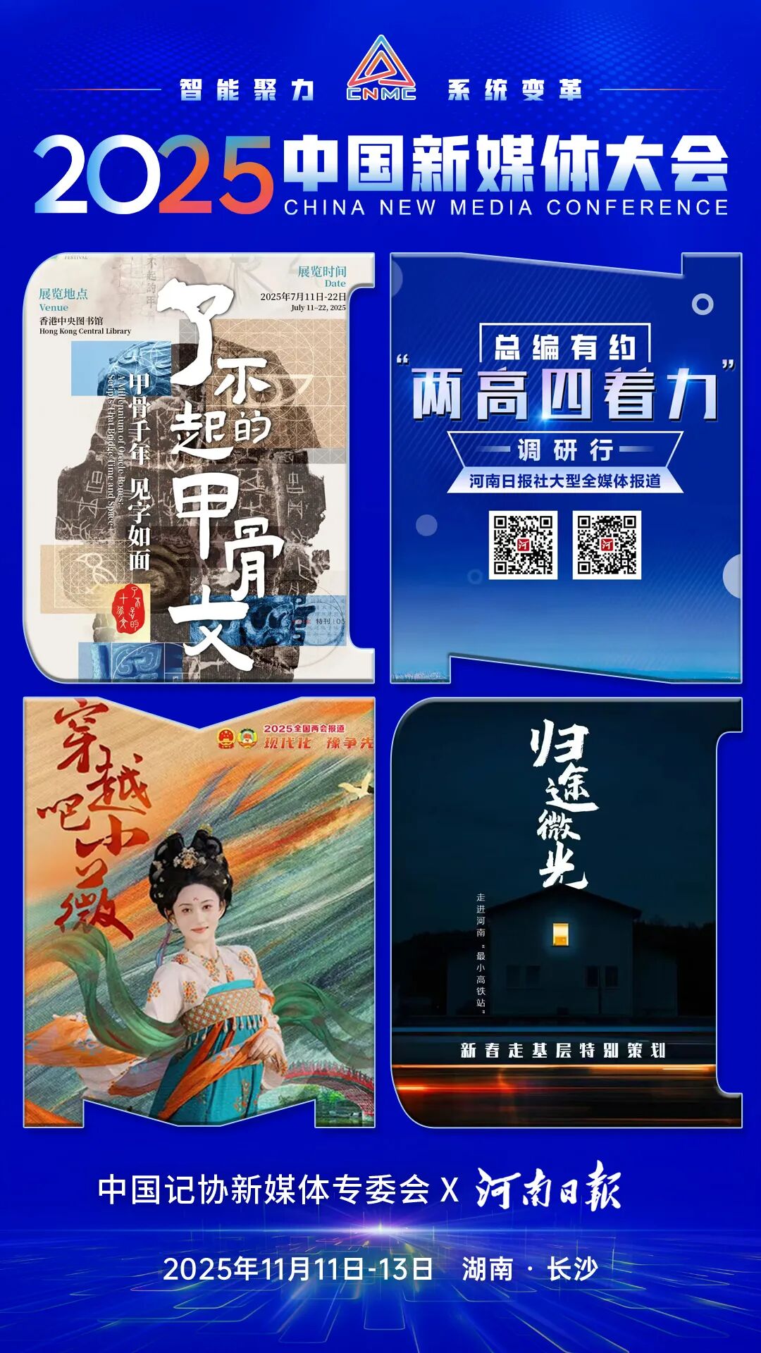 2025中国新媒体大会将于11日至13日在湖南长沙召开,中国记协新媒体专业委员会各成员单位纷纷推出“联名海报”为大会预热。