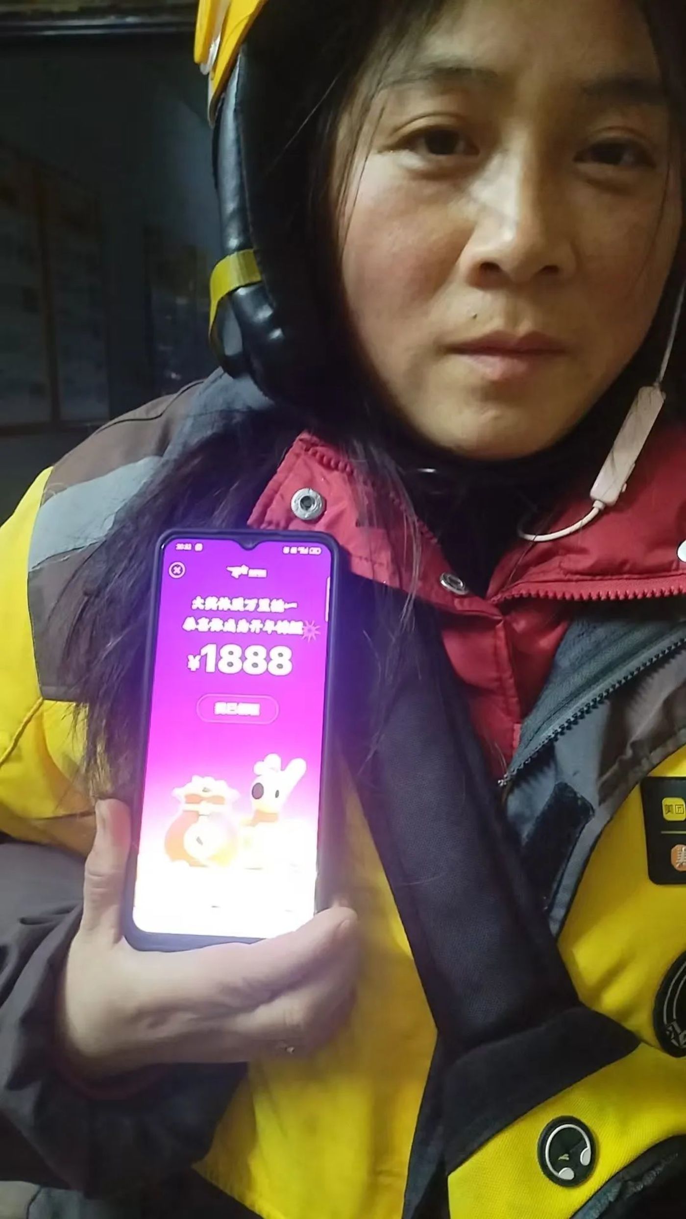 大年初一,湖南岳阳的骑手童利伟在美团骑手 APP 抽到了 88 元红包,晚上 6 点又通过弹窗收到 1888 元红包。