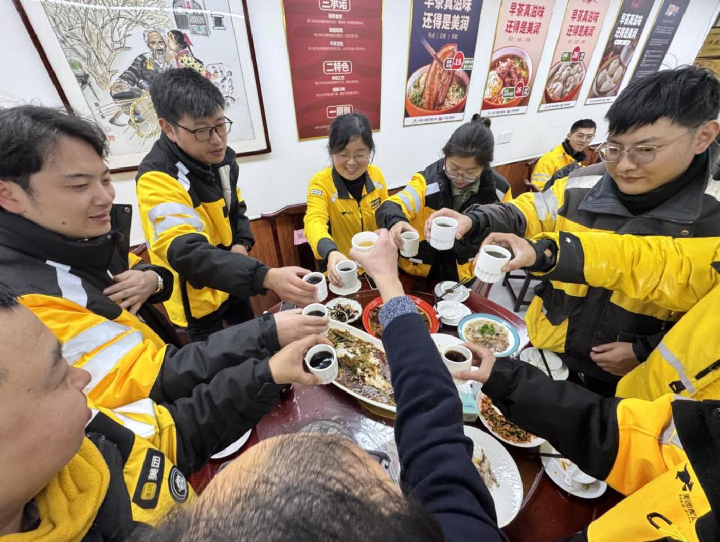 从2021年入行以来,张壮每年除夕都和站点的同事们度过。站长平日很照顾他们,手艺了得,这几年总会亲手做一桌年夜饭招呼他们一起吃。