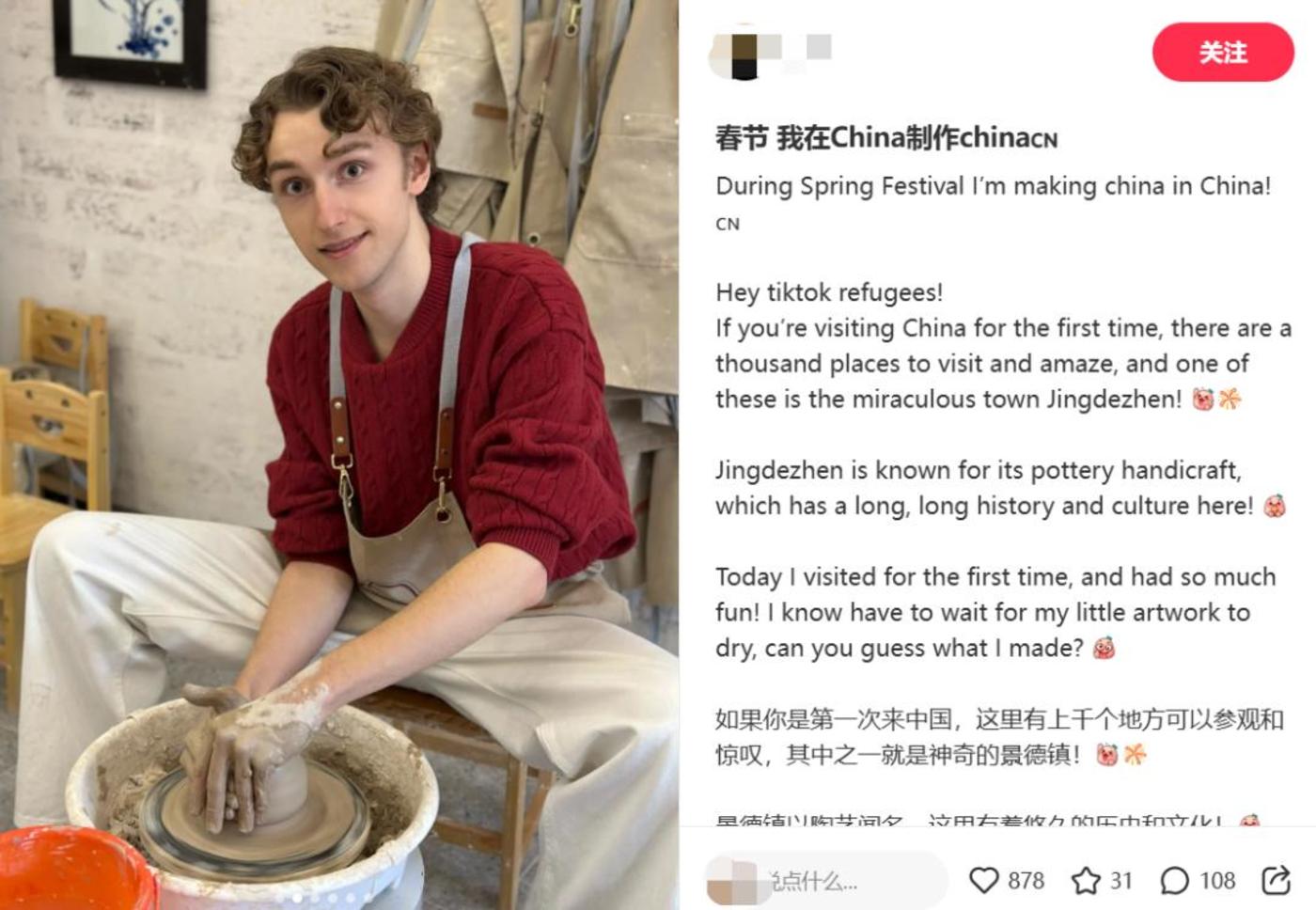 春节前夕,有荷兰网友远赴景德镇体验陶瓷文化,还在小红书上发布了自己做的陶器照片,形容这里像“陶瓷的王国”。除了景德镇这类农文旅特色鲜明的景区,途家数据显示,浙江安吉、福建平潭、广东南澳等小众乡镇,也都是入境游客感兴趣的旅游目的地。