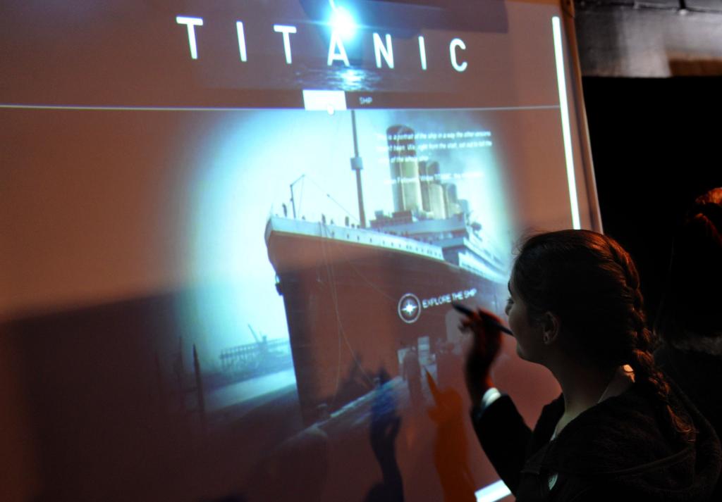 2012年4月11日,在美国纽约曼哈顿的南衡海港博物馆,游客在泰坦尼克号失事100周年纪念展上参观。新华社记者王雷摄