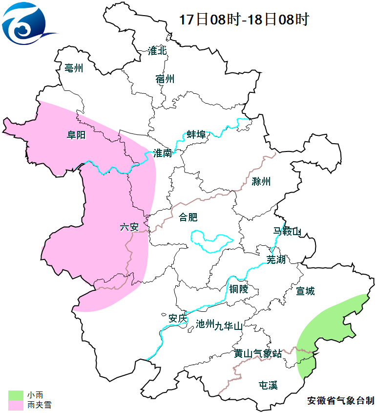 17日:全省阴天转多云,江北西部部分地区有小雨或雨夹雪,江南局部有小雨。
