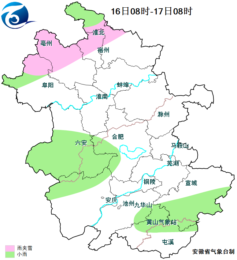 16日:全省晴天转阴天,夜间淮河以北部分地区有小雨或雨夹雪,大别山区和江南部分地区有小雨。