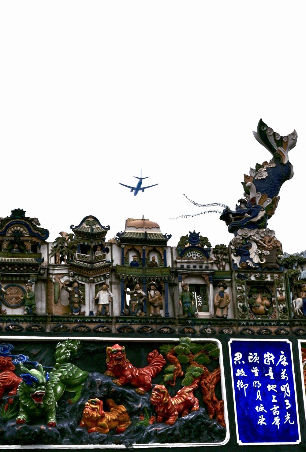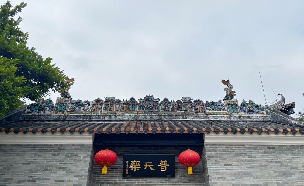 11月11日,广州市花都区炭步镇茶塘村洪圣古庙屋脊上的鳌鱼装饰。新华社发(骆紫媚 摄)