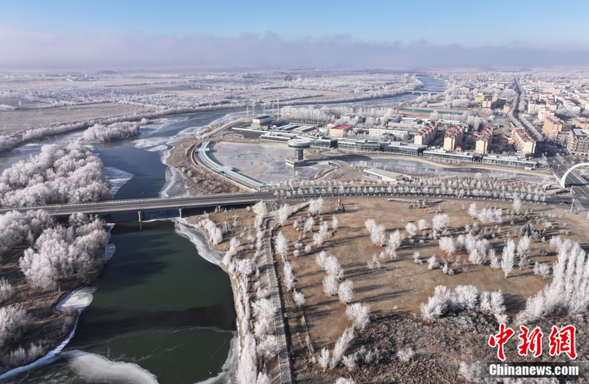 冬日的布尔津县,额尔齐斯河穿城而过。