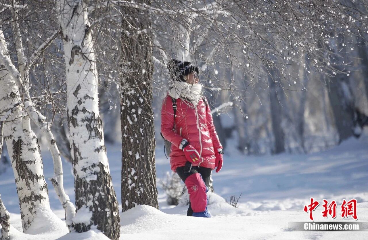 游客感受布尔津县冬季雾凇美景。王小军 摄