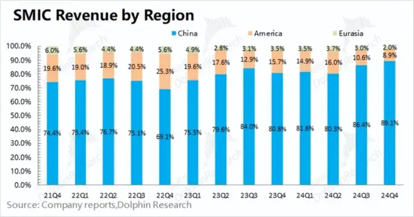 中芯国际重新调整了地区收入分布的口径,从原来的“北美洲/中国内地及香港/欧洲及亚洲”调整成了现在的“中国区/美国区/欧亚区”。由于口径的调整,数据上略有差异。