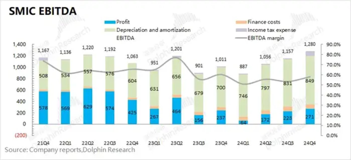 从 EBITDA 角度看,本季度中芯国际税息折旧及摊销前利润12.8亿美元,继续提升。