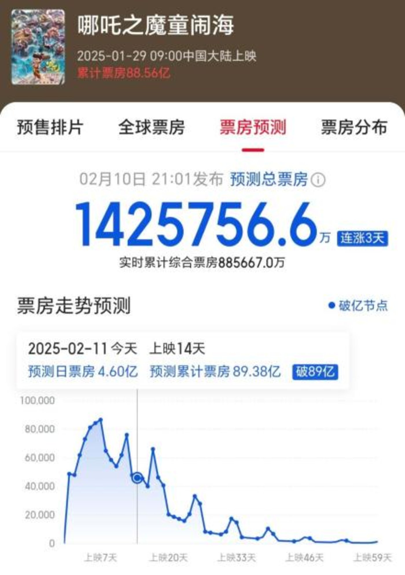 2月10日,《哪吒2》单日票房4.8亿,超出预测近1亿。在春节和寒假过后的工作日还能有如此之佳的票房表现,证明《哪吒2》的终点远不止100亿出头。