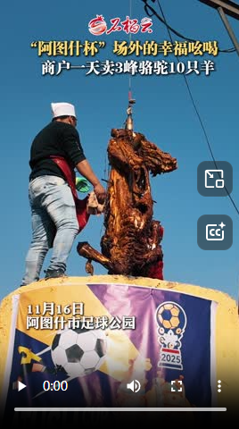 11月16日,2025年新疆“阿图什杯”足球邀请赛现场内外热闹非凡,场外美食广场的吆喝声格外吸睛。“来来来,烤骆驼出馕坑了”的吆喝声吸引大批观赛观众驻足品尝,商家生意火爆,单日便售空3峰骆驼和10只羊。