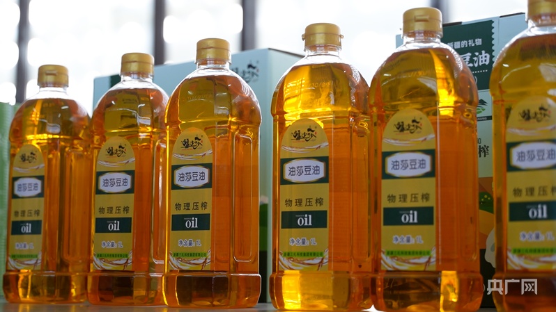 在兴安镇油莎豆产业园的精深加工车间,油莎豆正变身高端食用油、化妆品原料。