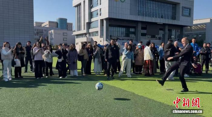 中新网南京11月19日电 (记者 朱晓颖)19日下午,在南京参加“2025世界市长对话·南京”活动的世界各城市的市长们走进南京市雨花台中学足球场,与学生守门员“过招”,感受“点球大战”的激情。“足球是世界通用语言”,多位市长在接受中新网记者采访时说。