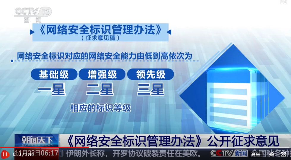 央视网消息:记者21日从国家网信办获悉,为提升产品的网络安全能力,加强消费者权益保护,维护网络安全和公共利益,国家互联网信息办公室、工业和信息化部起草了《网络安全标识管理办法》(征求意见稿),并向社会公开征求意见。