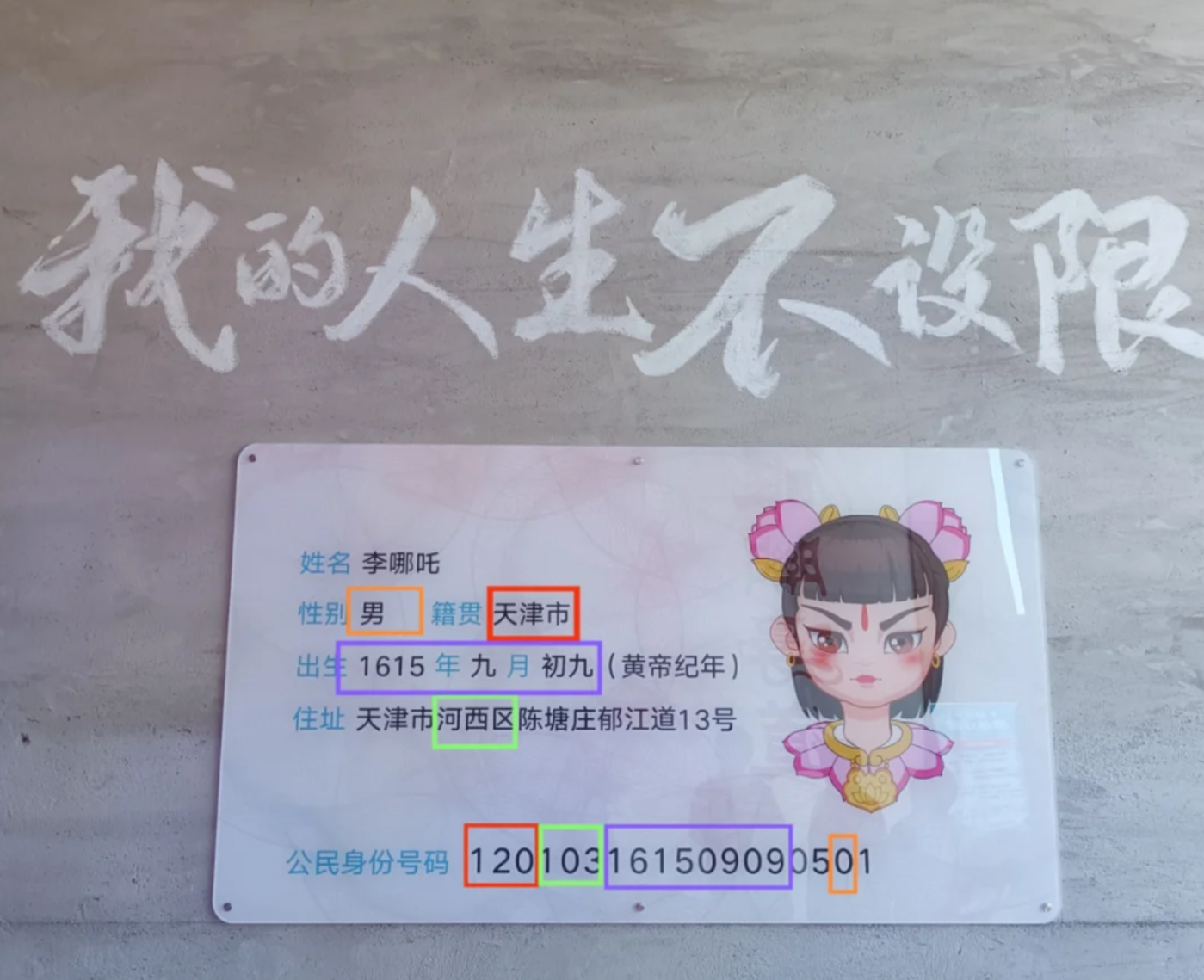 插图丨©哪吒小镇里印着“120103”开头(天津市河西区)的“哪吒身份证”