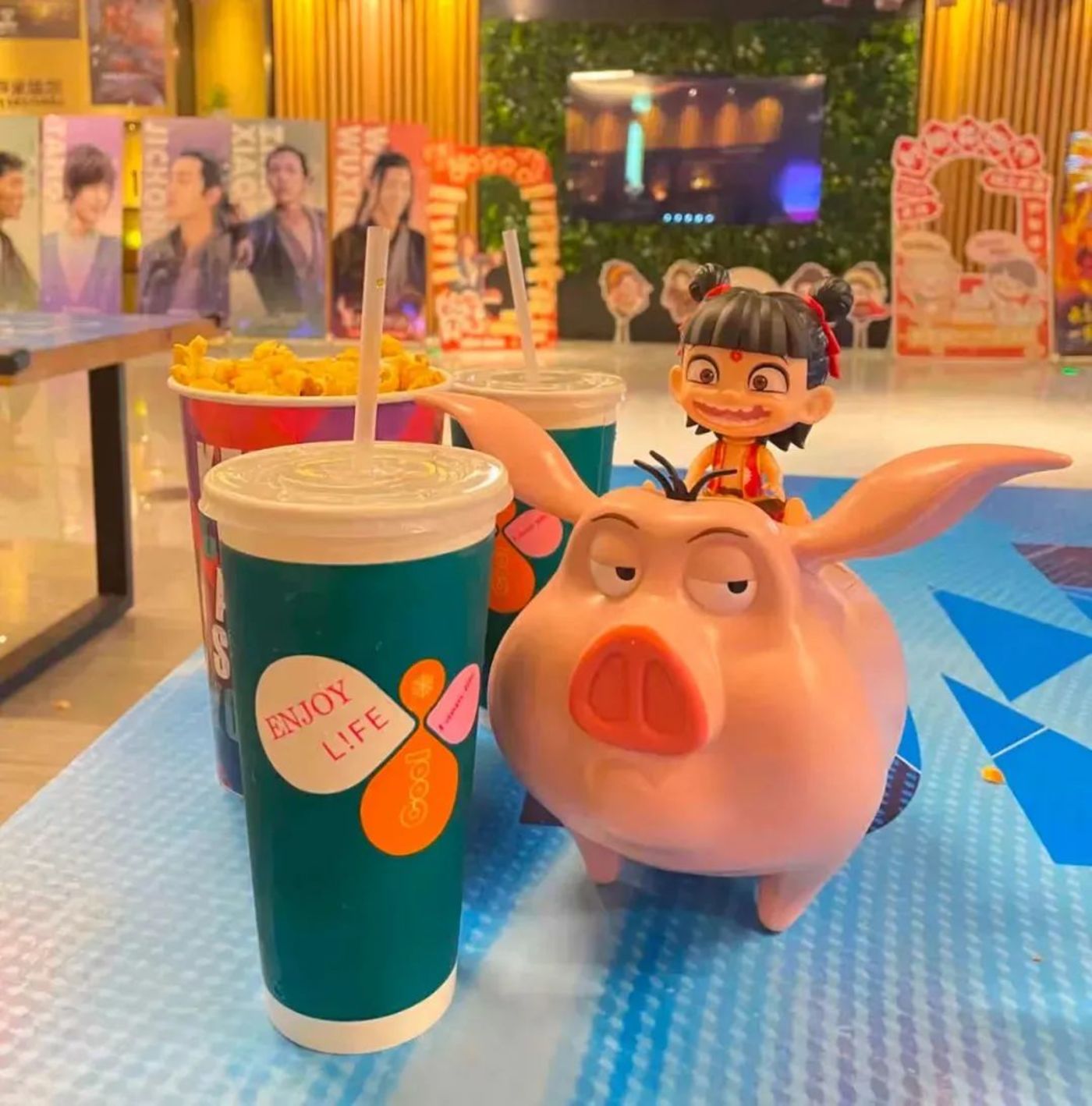 除此之外,印象最深刻的周边是在影院销售的哪吒飞天猪爆米花桶。以杭州市场为例,有的电影院工作人员表示该款爆米花桶在大年初五之前就售空了。