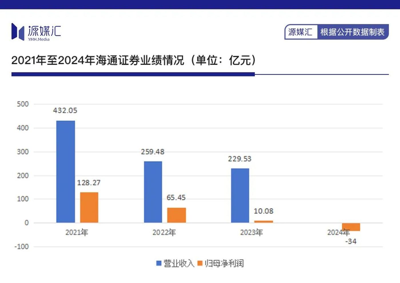 仅仅4年时间,海通证券从云端跌落,由一家归母净利润超百亿券商,堕落为一家净亏损超30亿元的券商。