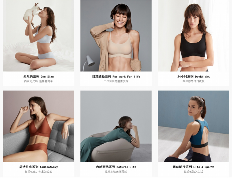 以Ubras、内外、蕉内为代表的本土品牌,凭借“无钢圈、零束缚”的理念迅速崭露头角。同时,超薄内衣、运动内衣、无尺码内衣等细分品类陆续成为独立赛道。