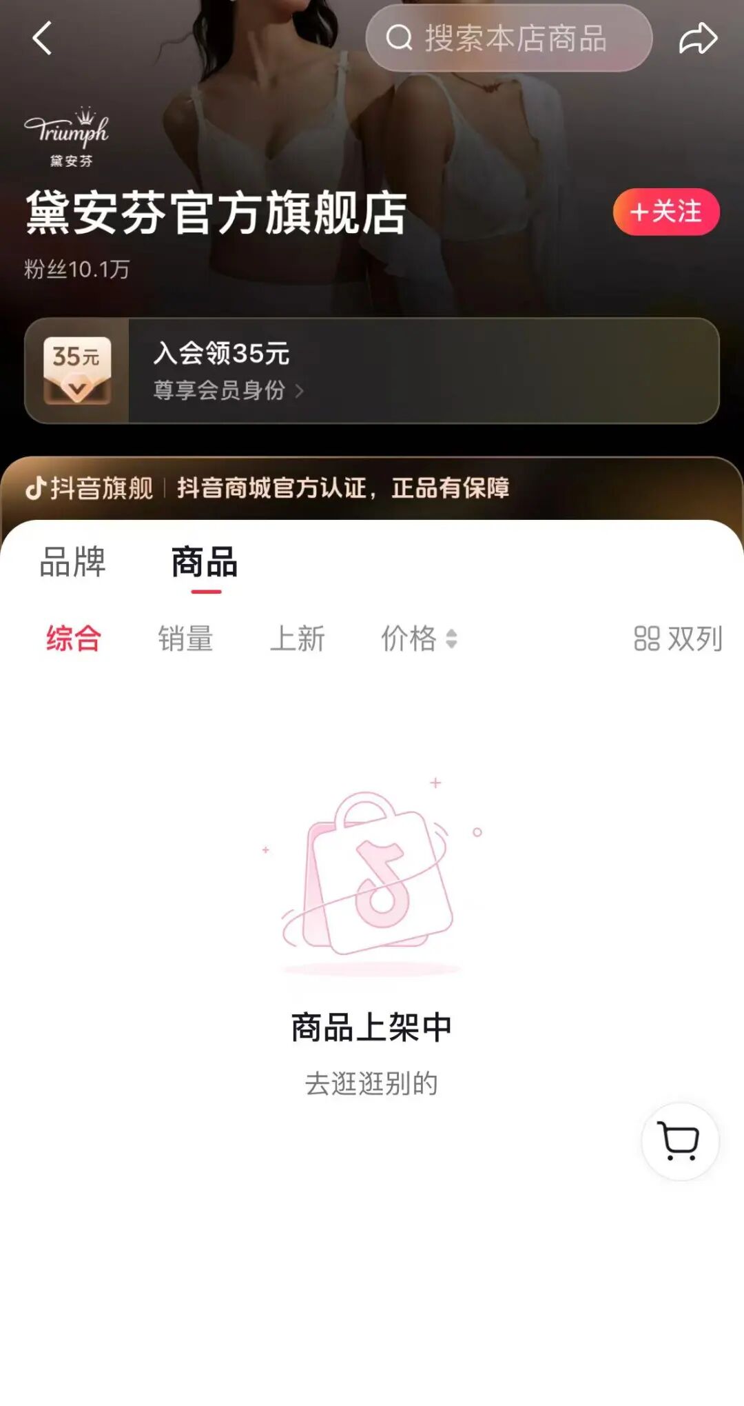 截至24日下午,其天猫旗舰店所有商品已下架,店铺粉丝数为240万+;其抖音官方旗舰店主页无任何商品,并显示“商品上架中”,店铺粉丝10.1万;京东App搜索“黛安芬”,已无法搜到官方店铺。