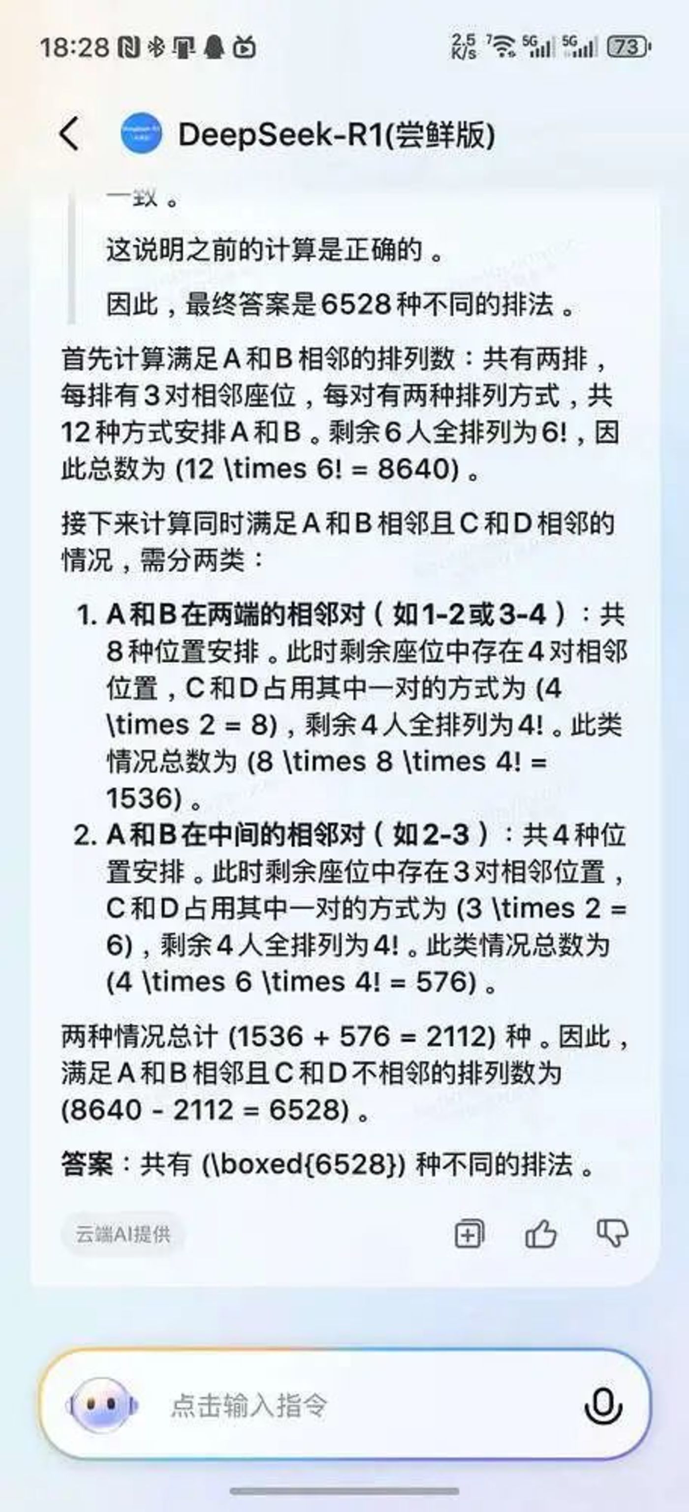 在一个技术论坛中,多位用户分享了其使用荣耀手机唤起DeepSeek,并用后者解答几何、排列等数学问题,以及解读网络热梗的使用体验,一位用户讲道:“思考时间比较长,但是答对了,感觉是满血版。”