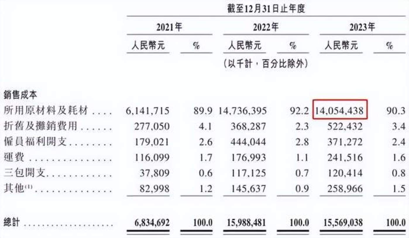 还有一个数据更能说明问题,2023年,哪吒营收为135.55亿元,原材料及耗材的费用却高达140.54亿元。这意味着哪吒“卖一辆车连材料钱都赚不回来”,亏损成为常态。