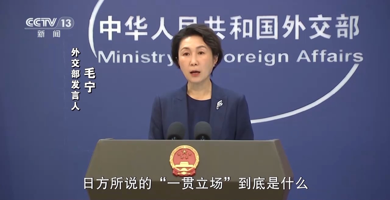外交部发言人 毛宁:中方和国际社会要求确认的是,日方所说的“一贯立场”到底是什么,日方是否仍坚持一个中国原则,日方应诚实、准确、完整地讲清其所谓“一贯立场”,轻描淡写一笔带过,只提概念回避实质,试图借此蒙混过关,这种伎俩行不通。