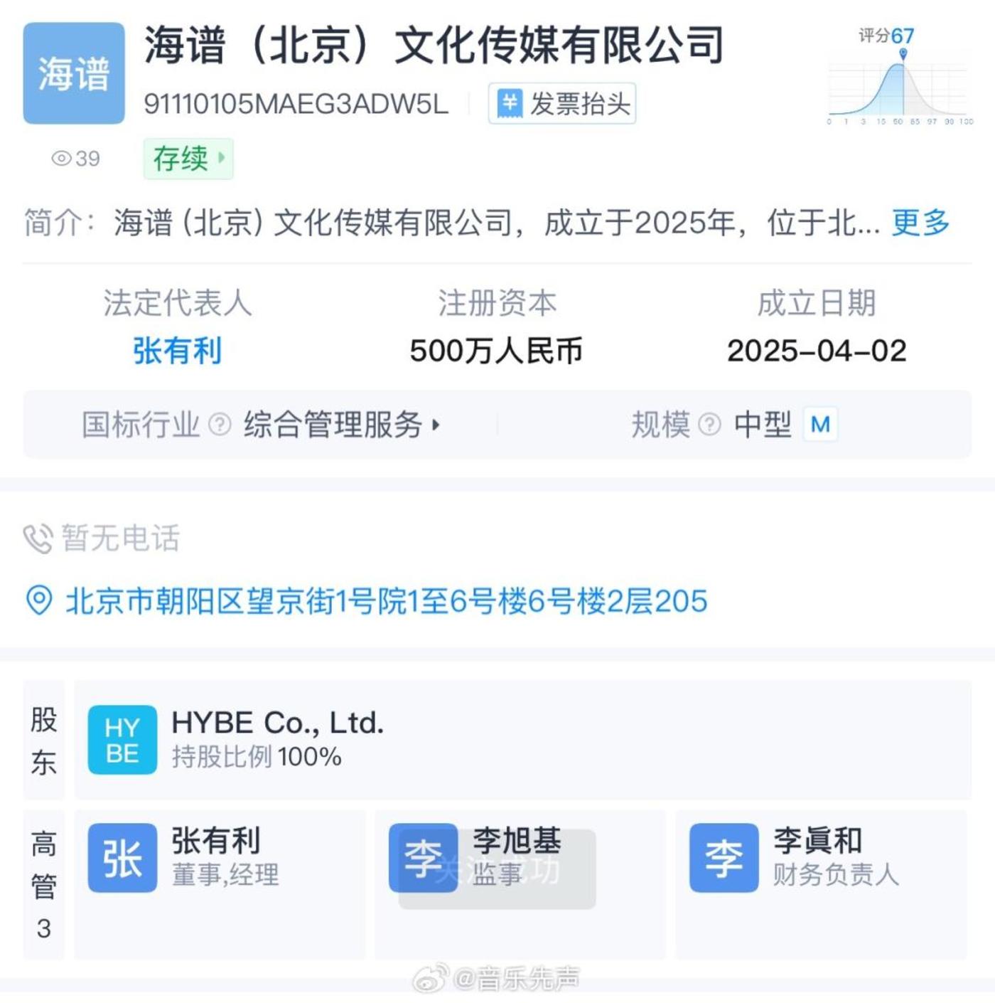 HYBE的最新动向也引发行业对中韩文化合作重启的趋势预判。今年4月,HYBE在北京正式设立旗下第四个海外法人公司——海谱(北京)文化传媒有限公司(HYBE CHINA)。
