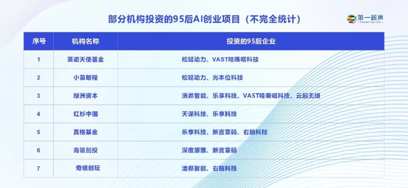 作为专注AI和先进制造等前沿科技领域的投资人,小苗朗程管理合伙人方正浩向第一新声分享了一个新趋势,他发现近期接触的项目中,95后创业者占比已经达到20%左右。