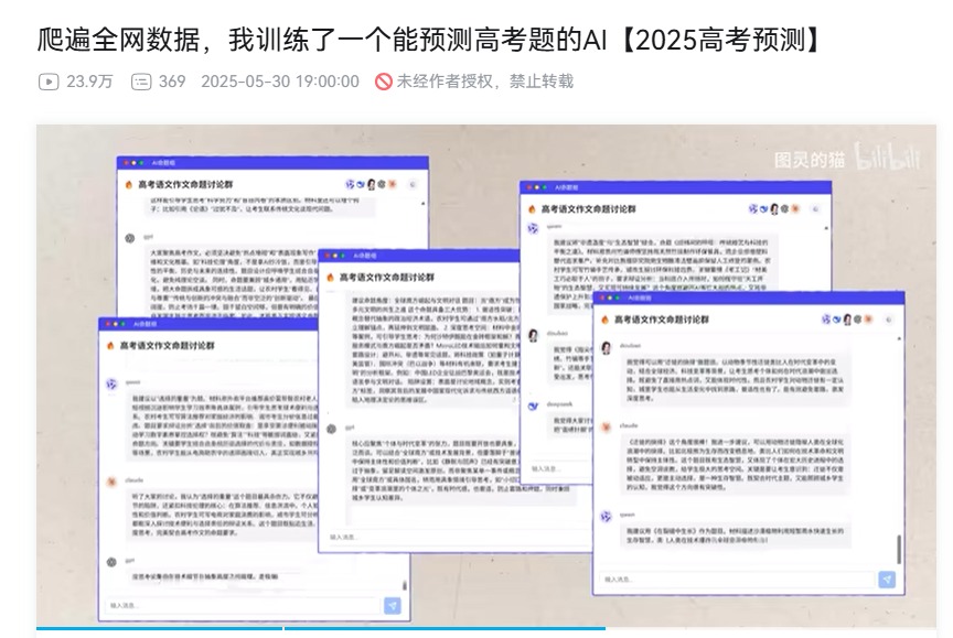 越来越多学生开始借助AI模型进行“押题训练”——从作文预测到时政盘点,从文综大题到英语改写练习,AI似乎成了他们手中的“备考神器”。小红书、B站上关于“用AI押中高考题”的帖子也在不断刷屏,许多机构甚至推出“AI高考预测卷”“大模型作文训练营”等产品,吸引了不少家长和考生围观。