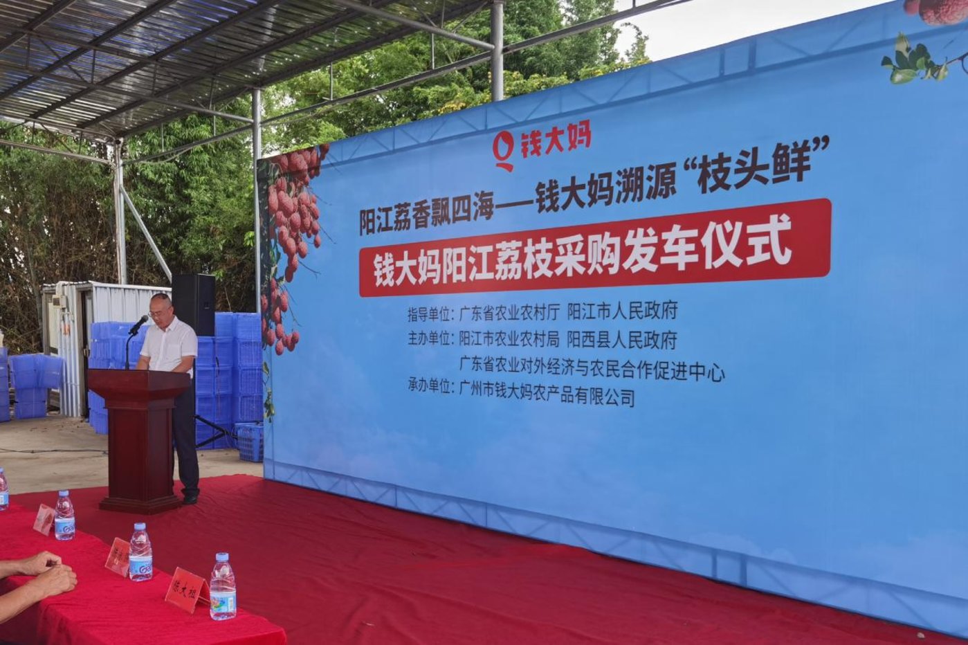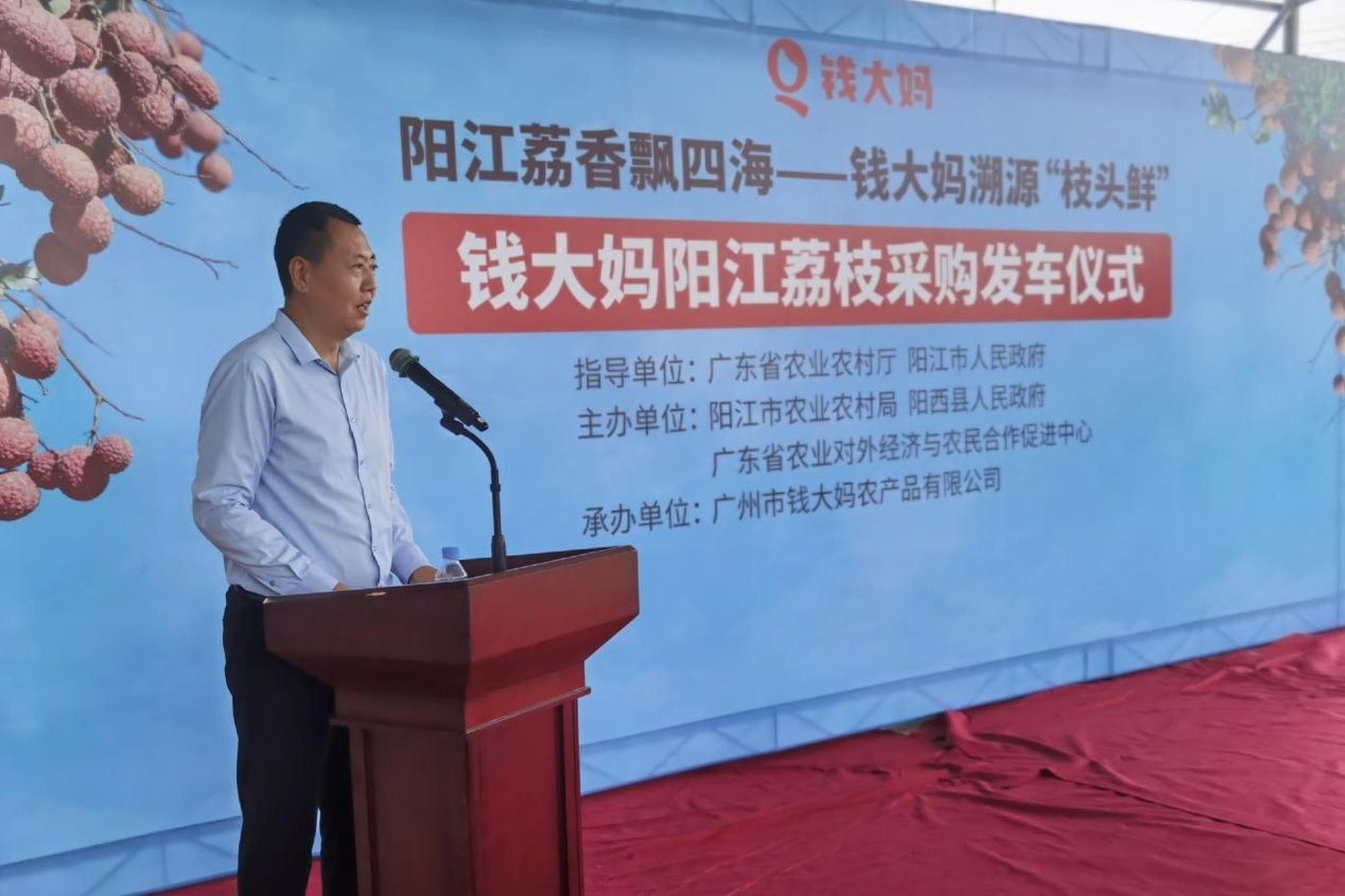 钱大妈集团公共事务部负责人张伟表示,今天的发车仪式,标志着钱大妈与阳江荔枝产业合作的新起点。通过与阳江本地的种植户和供应商紧密合作,我们为阳江的荔枝产业注入了活力,助力果农增收致富,推动阳江经济发展。这不仅是一次商业合作,更是钱大妈履行社会责任的具体实践,彰显了公司回馈社会、助力乡村振兴的决心和担当。