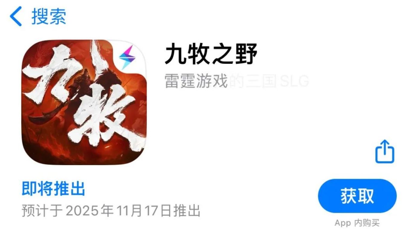 据官方介绍,《九牧之野》的游戏核心特色为“自由行军不走格子”和“多队搭配即时对抗”。目前游戏也已获版号,苹果应用商店显示其将在今年11月17日推出。