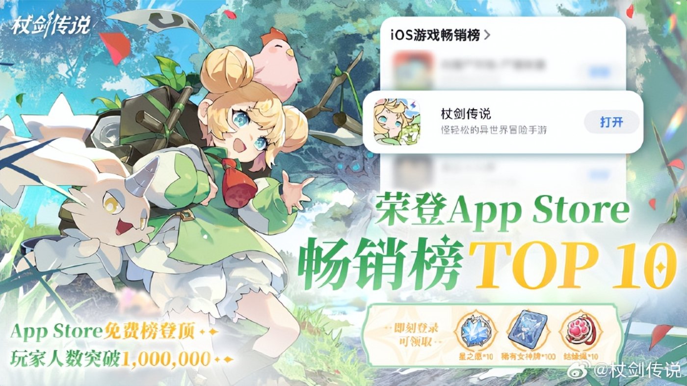 近日,国内畅销榜前列又出现新身影。来自雷霆游戏的自研竖屏放置新游《杖剑传说》,自5月29日上线以来,今日正式冲进了国内手游畅销榜Top10。