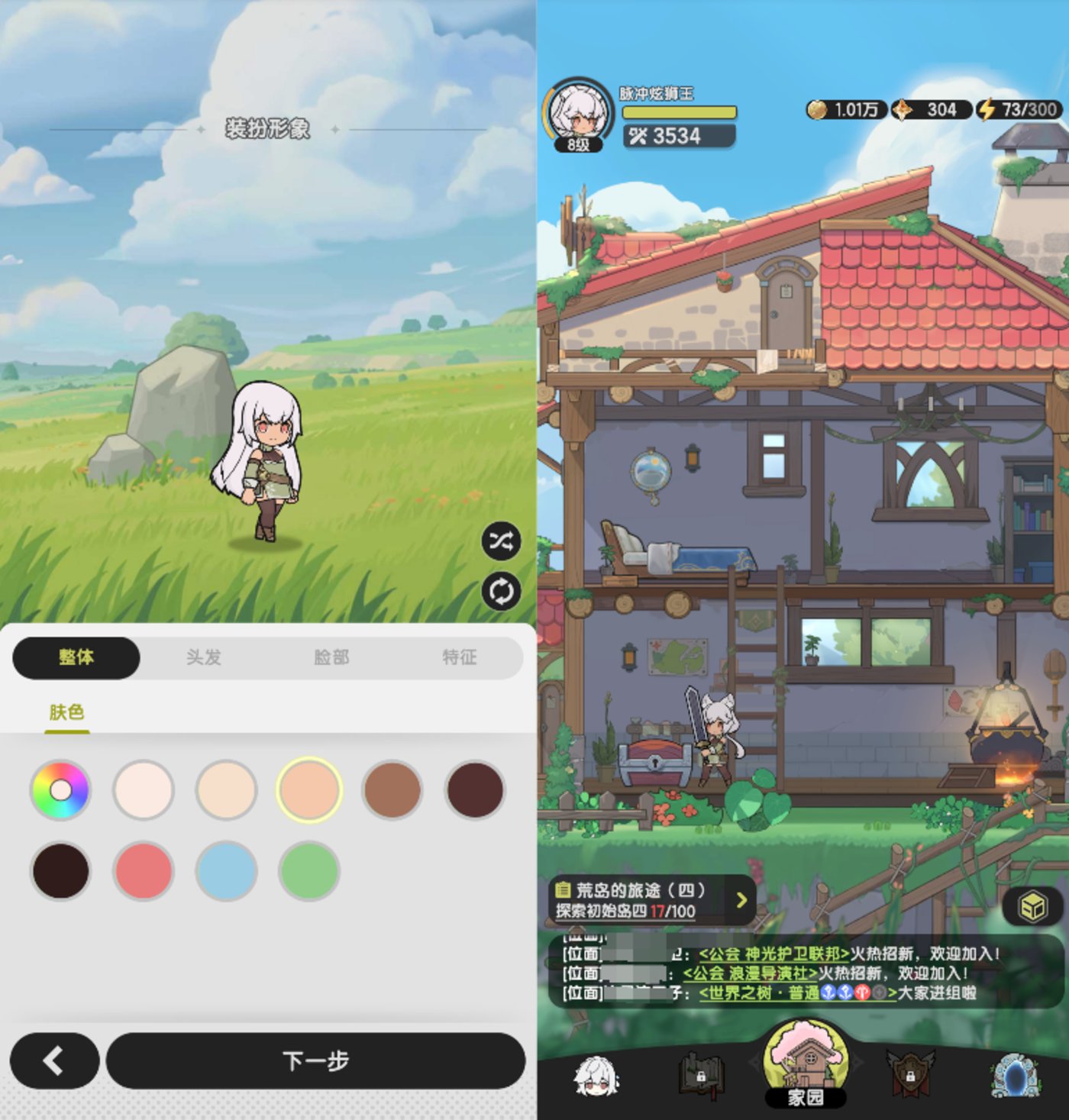 首先,作为一款异世界冒险题材的放置MMO,从体验来看,《杖剑传说》与市场同类产品的体验模块相似,都是“放置+探索+养成+社交”。玩家可在游戏内选择剑士和法师两个职业,通过探索大世界、打怪和放置获得材料,从而提升装备、武器和技能等级,并且通过参加公会获取更多副本材料。而在商业化模式上,《杖剑传说》也采取了同类产品的策略——放在武器与服装上。