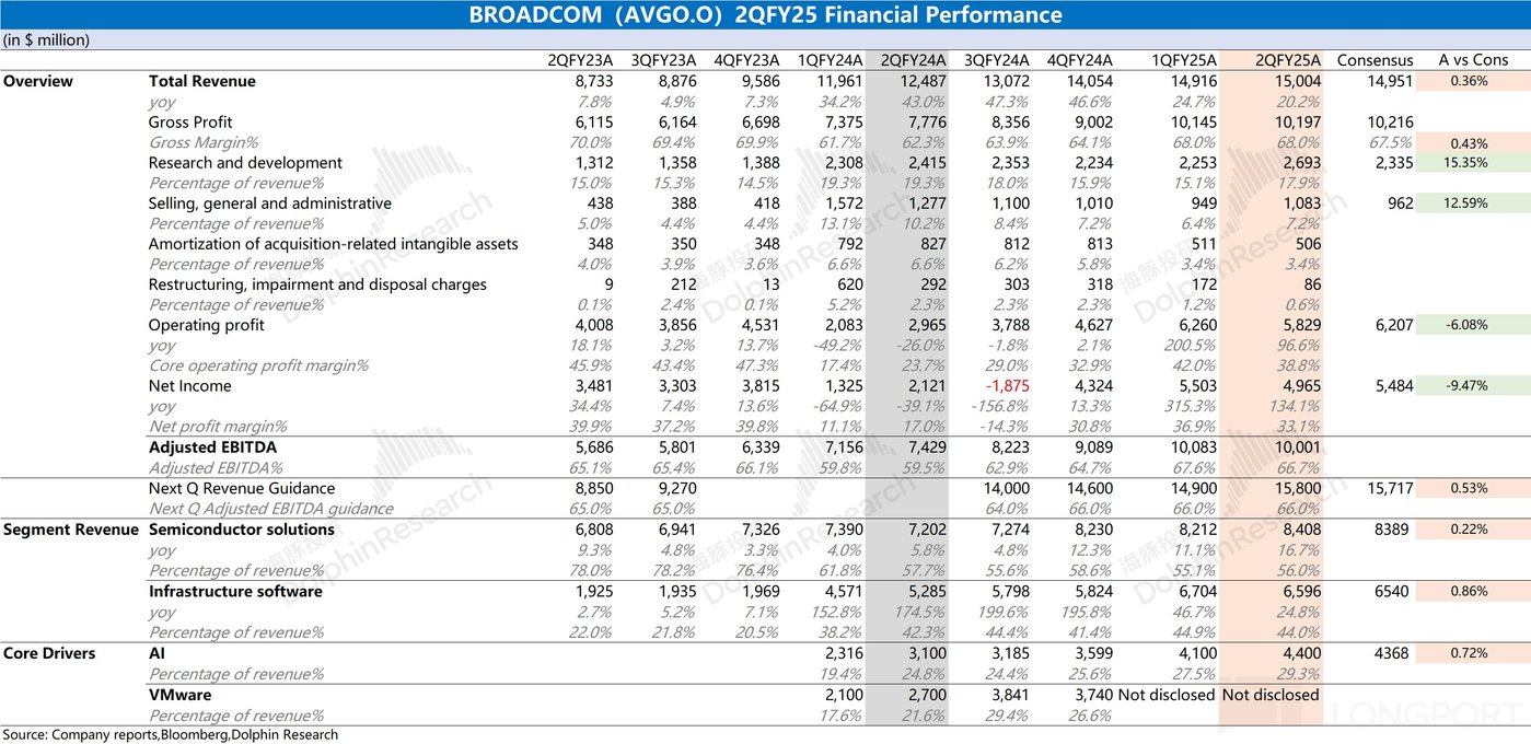 $博通.US 北京时间 6 月 6 日凌晨,美股盘后发布 2025 财年第二季度财报(截至 2025 年 4 月):