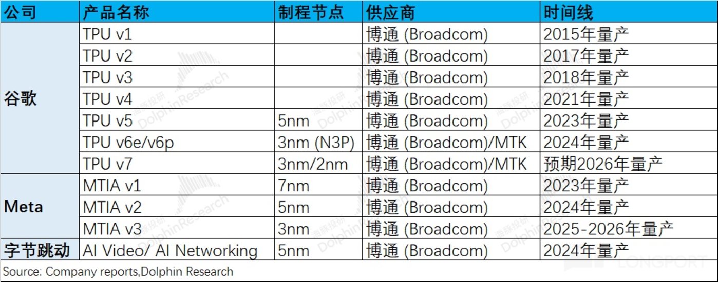 ②当前大客户的产品节奏:谷歌、Meta 和字节跳动三家的 ASIC 定制芯片已经实现量产,其中谷歌贡献了当前 AI 业务中的大部分收入,这主要是基于公司与谷歌之间的长期合作。其中谷歌 TPUv6 量产的增加,也将贡献公司下半年 AI 业务的主要增量。而进入 2026 年,谷歌 TPUv7、Meta 3nm 新品以及 OpenAI 和软银的产品,都能给公司 AI 业务带来相对持续的增长预期。