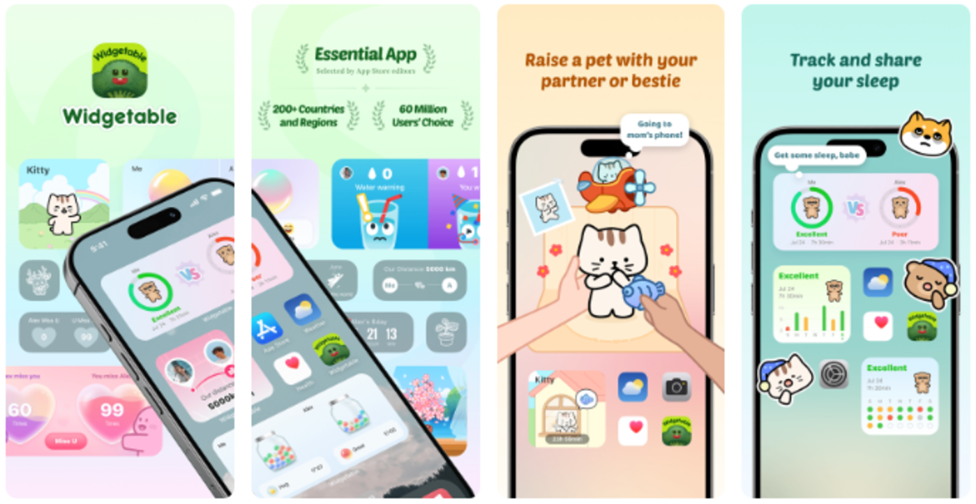 首先,由于市场整体格局变化不大,则顺应此前的反主流趋势,从垂直、小众赛道入手仍然可行。如基于此前流行的小组件展示玩法,针对情侣、密友人群提供实时互动、状态展示、宠物饲养等功能的《Widgetable》,其将传统社交应用功能浓缩至锁屏界面,简化了社交流程,有效提升了互动的效率。