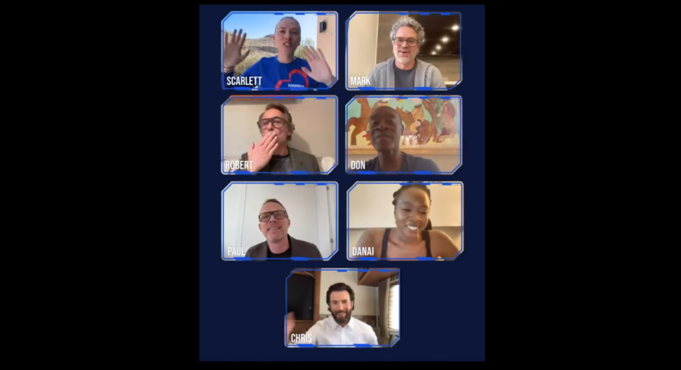 演员斯嘉丽连线“复联”成员演员为哈里斯号票视频截图