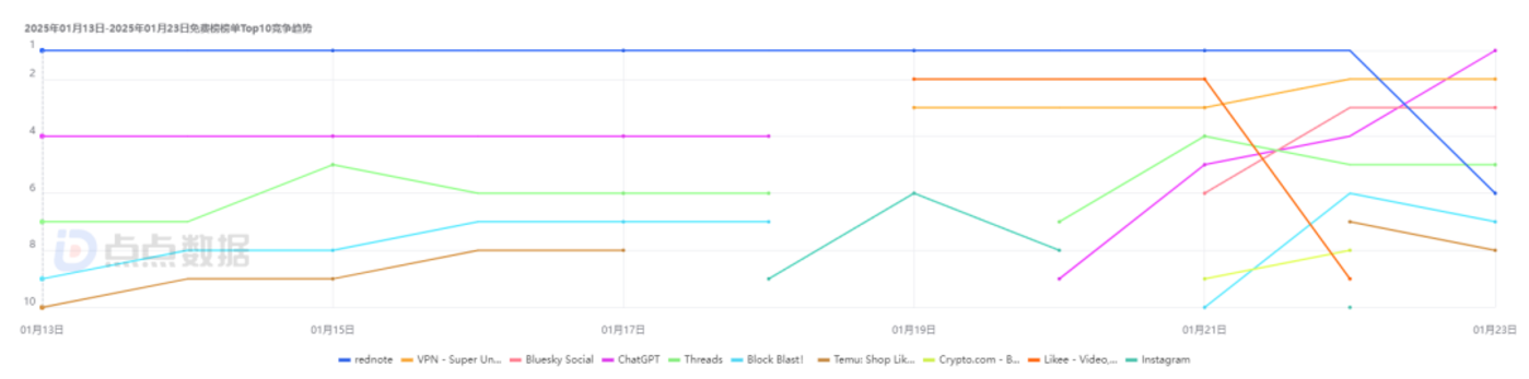 美国App Store免费榜前十应用趋势(2025.1.12-1.23)