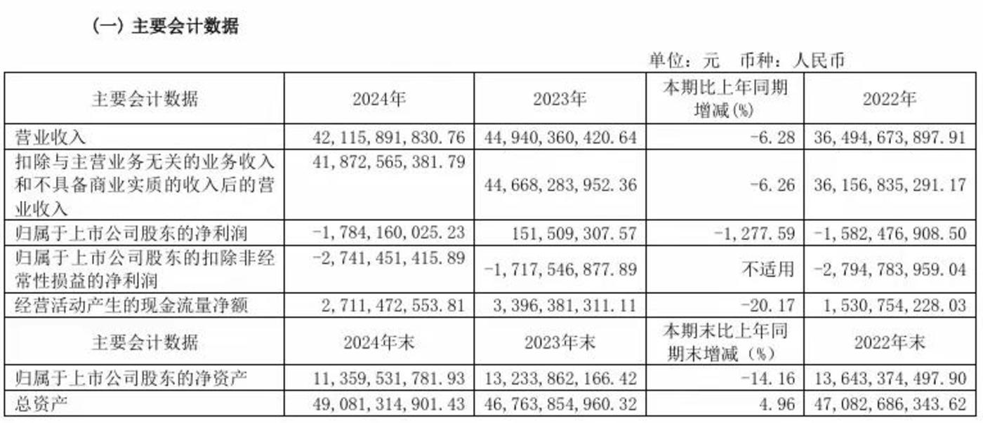 从全年看,去年江淮汽车营业收入为421.16亿元,同比减少6.28%;归属于上市公司股东的净亏损为17.84亿元,同比下滑1277.59%,创下上市以来的最大亏损;归属于上市公司股东的扣除非经常性损益的净亏损高达27.41亿元。