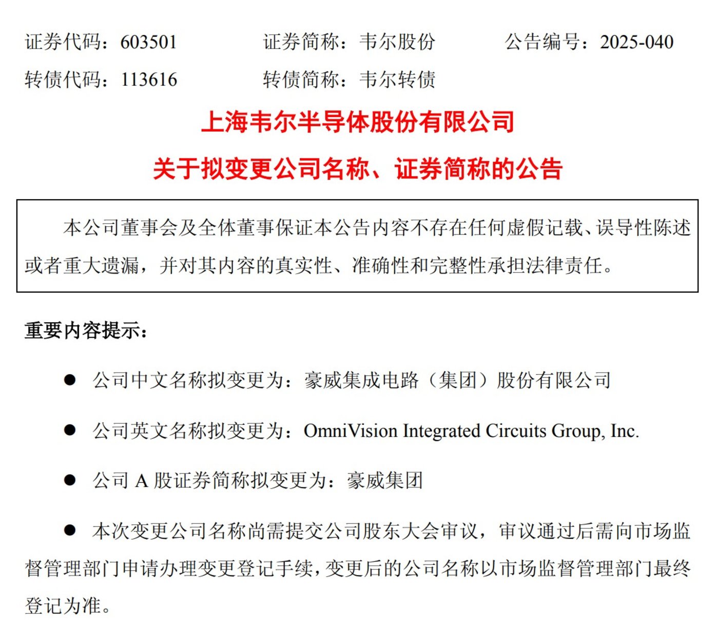 虽然韦尔股份沿用多年,但资本市场对“豪威”品牌认知更深,毕竟韦尔股份正是通过并购全球第三大CIS厂商豪威科技(OmniVision),才完成从半导体分销向芯片设计的飞跃。其微信公众号也是以“豪威集团”的名称运营,此次更名算是在登陆港股市场前,韦尔股份面向资本市场进行的、一次以正名为目的的品牌活动。