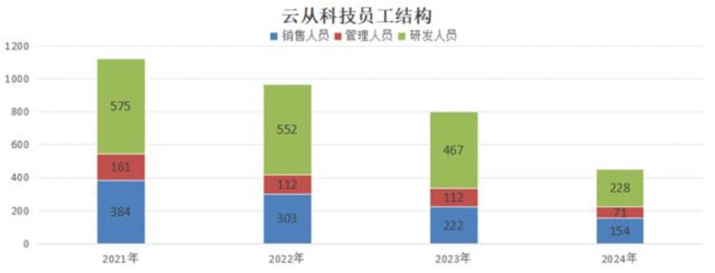 事实是,云从科技从2021年就开始了漫长的人员优化之路,20年其员工总数为1799名,21年云从员工数减少679名到1120名,再到24年云从又净减少348名员工至453名,云从员工数量不足峰值时的1/3。