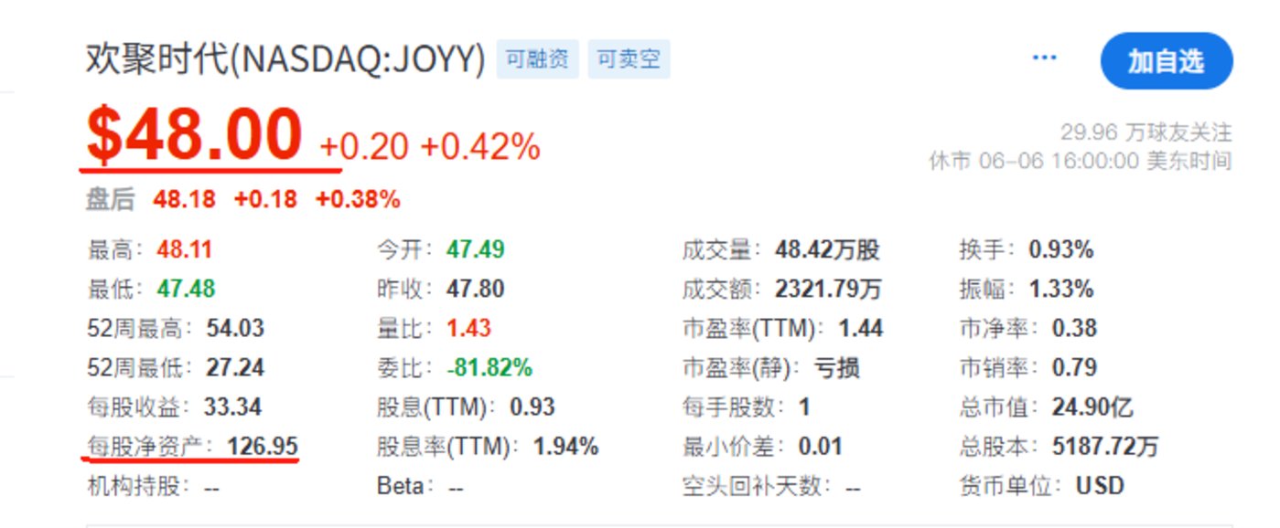挚文集团的股价够低,但从PB来看,前YY的母公司欢聚集团才是最短的“烟蒂”。以21亿美元将YY卖给百度后,欢聚集团的总市值竟然只有25亿美元左右,由于账上囤积了大量现金后,欢聚的净资产已经是市值的两倍以上。