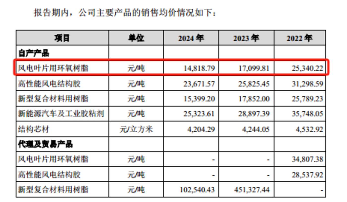 此外,在道生天合的回复函中,公司披露了风电叶片用环氧树脂的详细情况,具体如下: