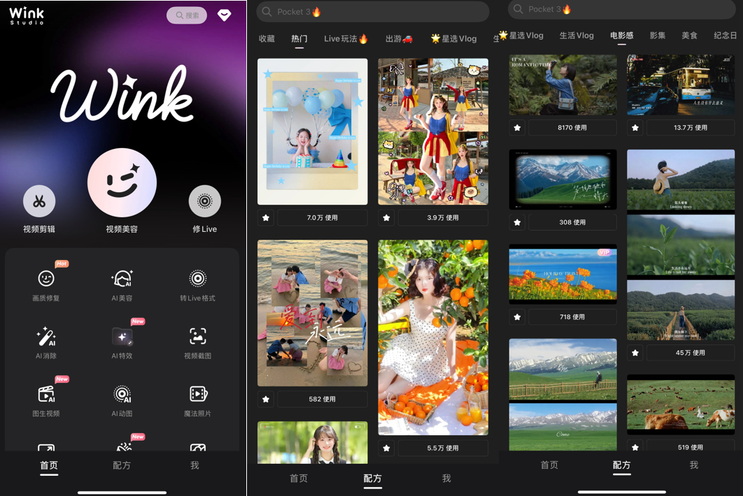 比如美图2022年推出的AI视频工具Wink,直接面对字节旗下的剪映、快手旗下的快影等大流量强劲对手。这类竞品背靠内容平台的生态循环,拥有巨大流量池的同时,还有着更为直接的用户数据反馈。相较之下,美图旗下的Wink,无法依赖内容平台的流量循环,必须更加专注于打磨AI工具本身,致力于效果最大化。