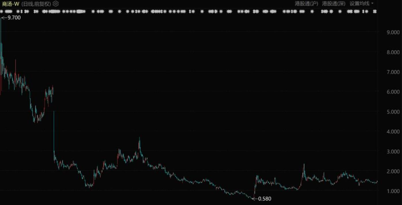 以曾经行业头部企业商汤为例,2021年赴港上市的时候,贵为全球估值最高的AI独角兽企业,但从2022年开始股价就一直深度下跌。目前,其市值与最高点相比已蒸发3000亿港元以上。