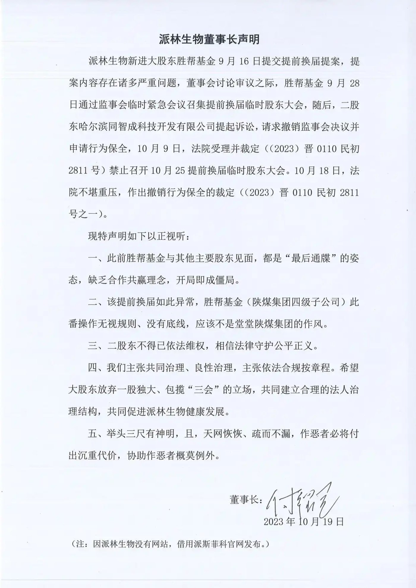 之后,新股东胜帮英豪提出提前换届董事会提案,一举提名13位董事,付绍兰出局董事会。双方交恶之际,付绍兰还曾在派斯菲科官网发文斥责胜帮英豪“无视规则、没有底线”“一股独大、包揽‘三会’”,言辞激烈。不久后,双方又握手言和。