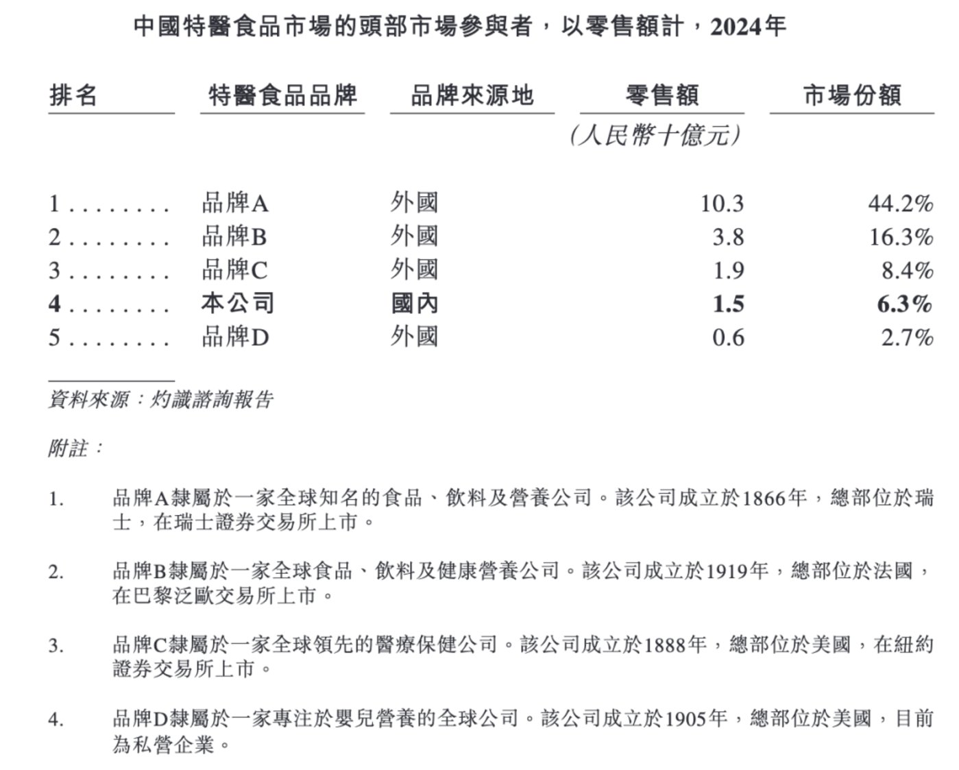 根据圣桐特医招股书披露的信息,行业前三名和第五名分别有可能是雀巢、达能、雅培和美赞臣。