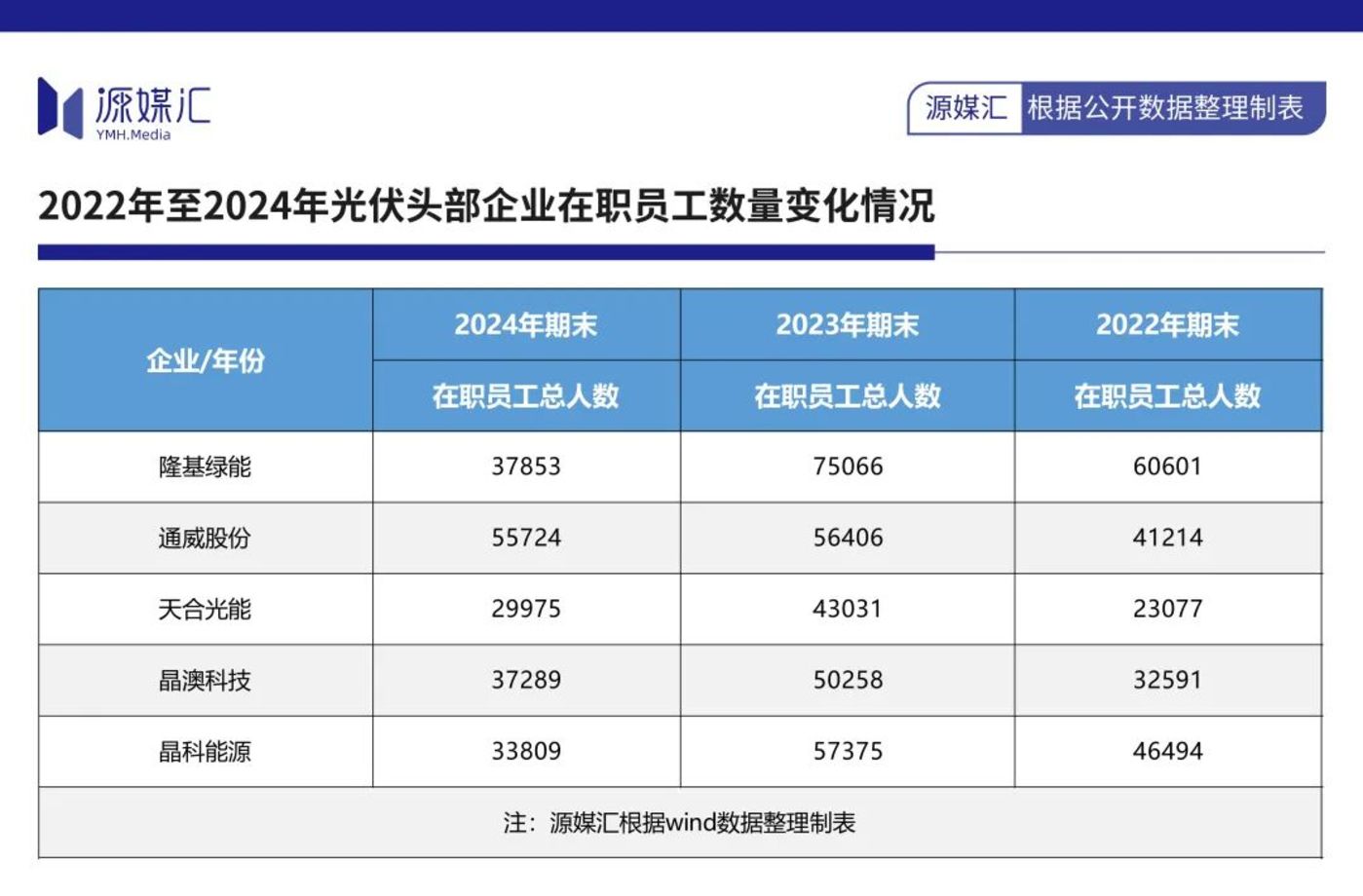 源媒汇统计发现,通威股份、天合光能、晶澳科技、晶科能源等头部光伏企业,在过去一年里均出现了不同程度的减员情况。