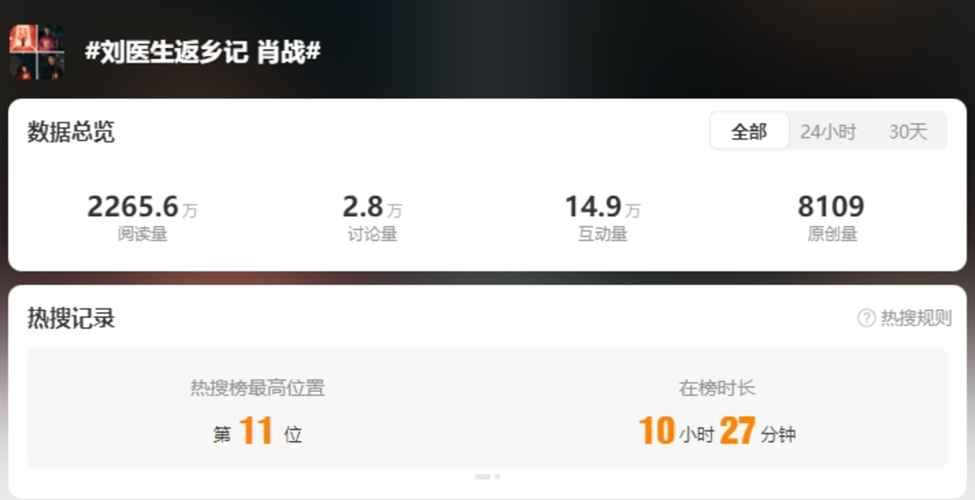 观察肖战粉圈的舆论后会发现,粉丝对于《刘医生返乡记》的不满主要来自医疗题材。该剧改编自刘三叔的小说《飞刀》,讲述了北漂医生刘铮亮因做飞刀手术出现意外而被医院辞退,无奈之下只能回到老家东北小城,在基层医院的急诊科工作所遭遇的一系列故事。