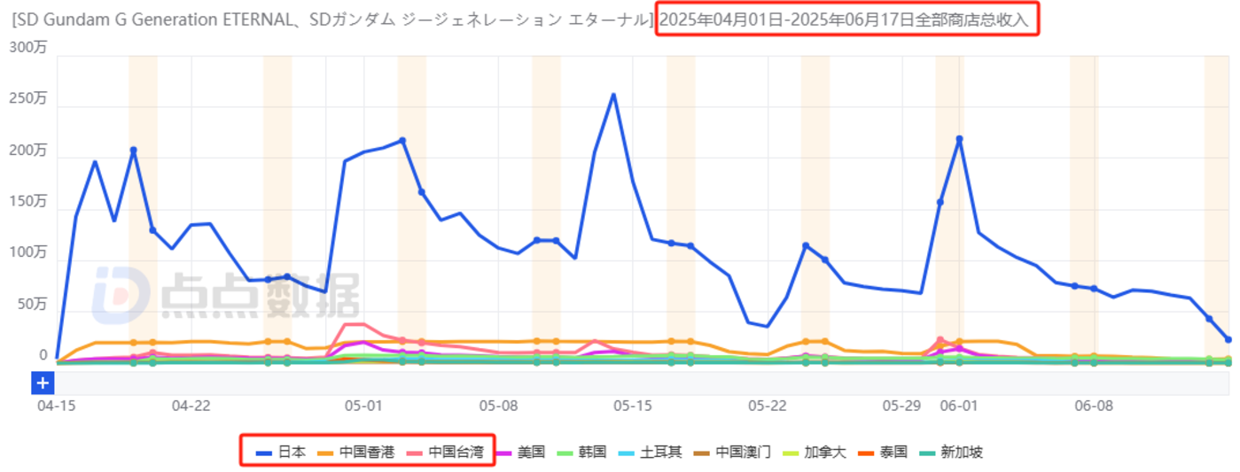 这点从今年4月中旬上线的万代南梦宫新游《SD高达G世代 永恒》就能看出来,上线至今没有掉出过日本iOS游戏畅销榜TOP20,日本市场流水也是一路增长,5月达到2.75亿元,环比增长了102.2%。