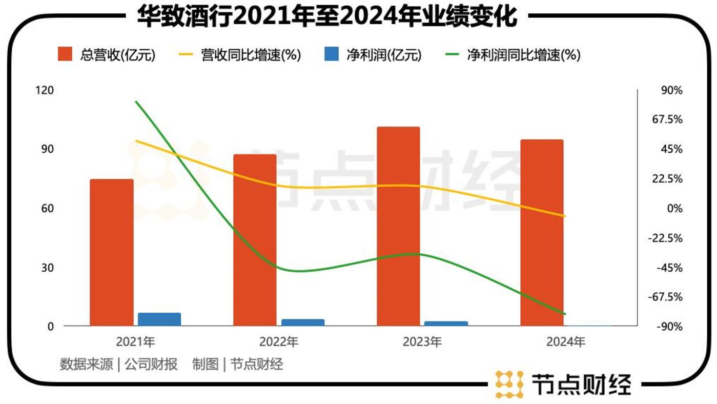 这份财报也标志着在2023年营收规模终于突破百亿后,仅一年后,华致酒行就被甩出了“百亿俱乐部”。